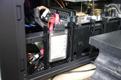 電源と3.5インチHDDトレイは下段、マザボはその上、2.5インチHDDトレイは側面という配置です。