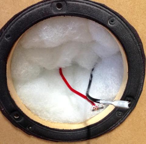 とりあえず100均の水槽用フィルタマットで代用した吸音材をギッチギチに詰め込んでみました。