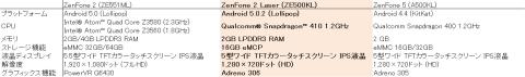 良い機会なのでZenfone2・Zenfone5との比較が出来るシートを作成してみました。