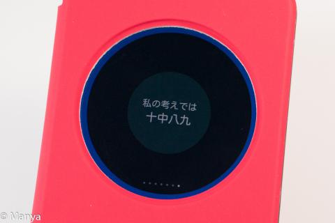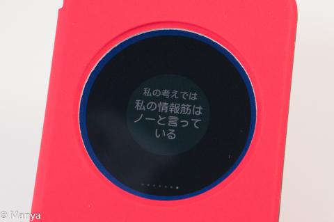 この状態でカバーを閉じると、丸窓に画面が表示されます。