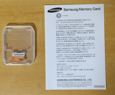 中身はこれまた簡易的な説明書と、SDHCカードが入ったケースがありますが