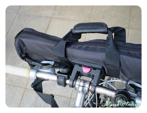 ブレーキレバーなどは押されていないもののレバーに手をかけると三脚ケースにぶつかってしまって実用的では無いですね。