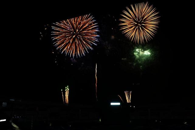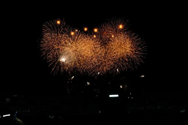 この日はユニフォームの配布だけではなく、試合終了後に約1000発の花火大会が開催されました。実は試合の方は負ける可能性は高いと思っていましたので、どちらかというと花火に期待していた部分もあります。カメラも観戦用のPanasonic DMC-FZ70ではなく、FUJIFILM X-E2+XF 18-55mm F2.8-4 R LM OISを持参していましたので。