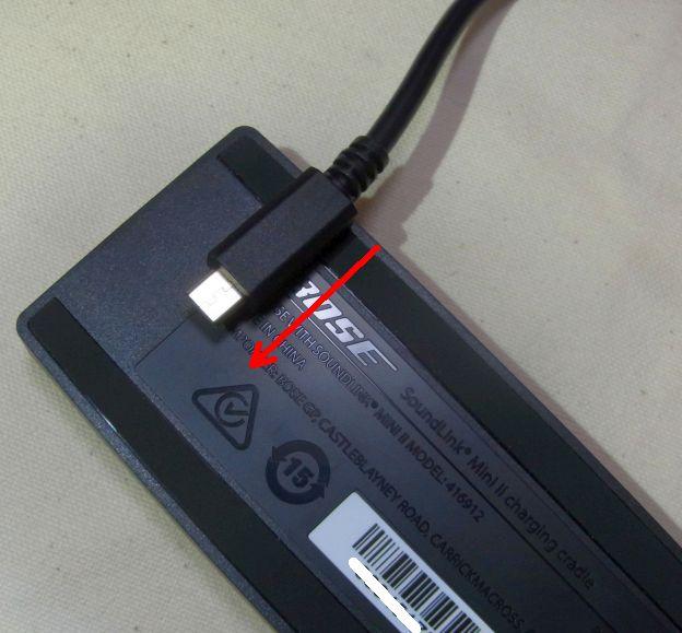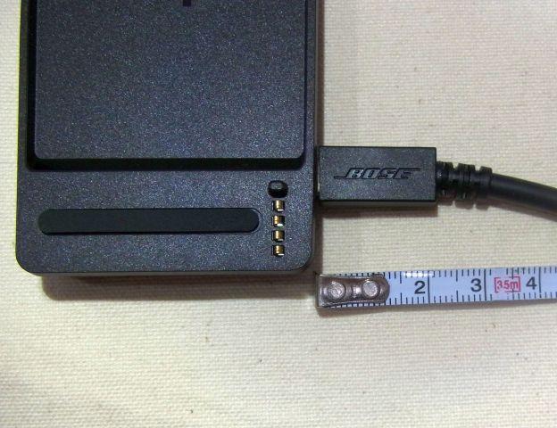 その隣にあるMicro-USBポートは充電用のもの。これを使えばのSoundLink Mini Blueooth speaker IIは単体でも使用することができるのだが、充電用のクレードルが付属するので、それに充電用USBケーブルをつないで定位置に置き、本体のみを持ち歩くようにした方が利便性が高い。このクレードルは幅16cmのコンパクトなものでSoundLink Mini Bluetooth speaker IIで覆い隠されてしまうような大きさで邪魔にはならない。