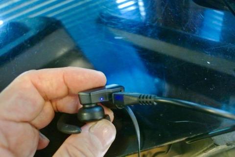 右側ユニットに充電ポートと作動状態を示す小さなLEDがあるのですが、作動中ずっと青色LEDが