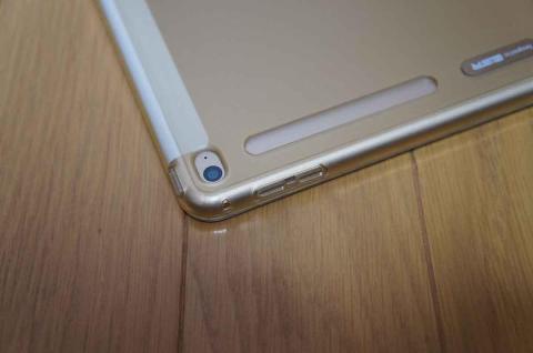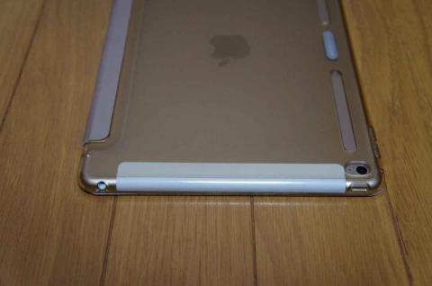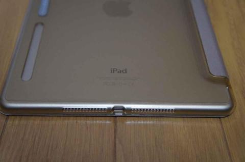 ESRさんのiPad用ケースは、この部分が特徴の1つと言えます。巷にある多くのiPad用ケースは、このスピーカーの両サイドから大きく空きを取ってます。つまり、約8センチは保護されないと言うことです。せっかくケースに入れていたのに、この部分に傷を入れてしまった。