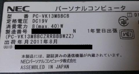28.NEC モバイルノート VersaPro VB-B 型番:PC-VK13MBBCB(中古・妄想価格8000円)