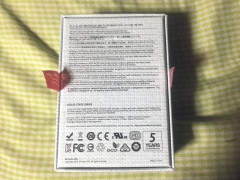 まずはパッケージ写真です。裏面に書かれた保証期間が5年という辺りで、この製品の位置付けが決して低いものではないことが判ります。後発の下位モデルSL300シリーズはTLC NAND採用で保証期間は3年となりますので。
