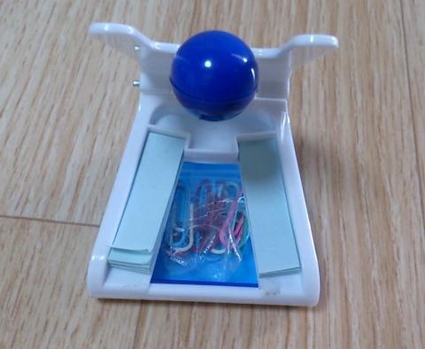 付箋とクリップのスタンドのよう。青い玉は何かわかりません・・・