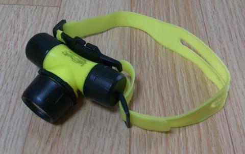 頭に掛けて、ピカッと照らす懐中電灯です。