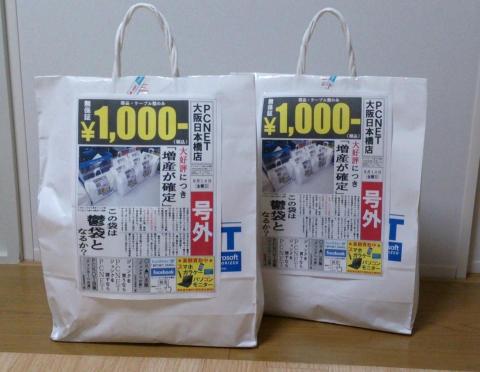 前回、数ある1000円袋の中で最も軽いものを選んだのですが、故障品の雑貨中心の強烈な鬱袋でしたorz なので、今回は残っている中で最も重いものを2つ選んで購入しました(`・ω・´)!