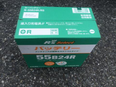 グローバルバッテリー社製55B24R-MFです。スターターが回ってくれなかった理由は、このバッテリーのセルが一部死んでいたことによると思われます。温度計表示で40度を超えているときにエアコン全開で使い続けたせいかもしれませんが…。