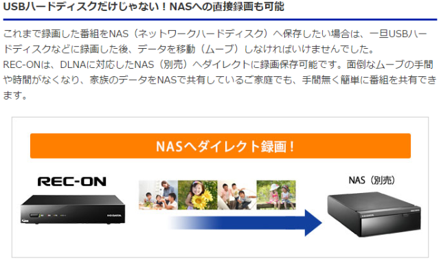 ちなみに、DTCP-IP対応のNASにも録画が可能です。 ※DLNAには対応していません。