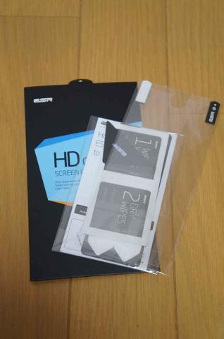 PET素材の液晶保護フィルムが1枚付属します。フィルムのサイズは、iPhon6 Plusの液晶サイズより少し大きいです。