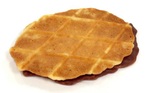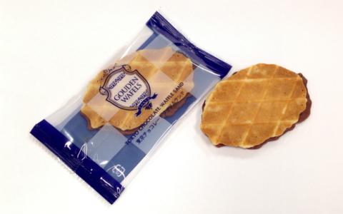 薄く焼き上げたサクサクのワッフルクッキーになめらかなチョコレートをサンドしています。
