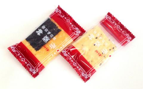 「商品名」だけでは何だか分かりませんが、「神楽坂」は国内産うるち米を使用して伝統の技で一枚一枚丹念に焼き上げた薄焼き煎餅の詰合せです。