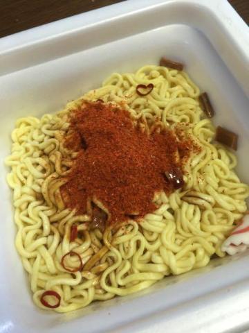 これは汁がないので辛味は弱く感じるのですが、感覚的に少し辛さを抑えた節があります。