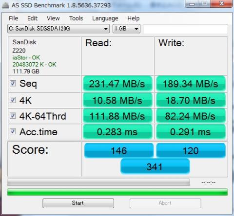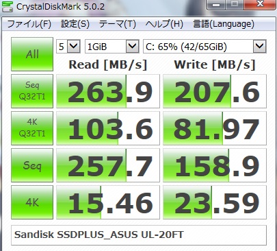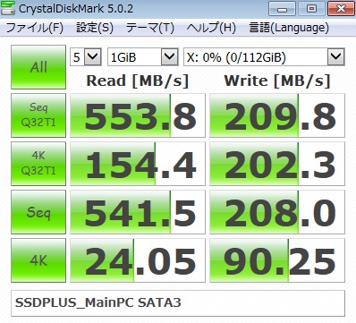 SSD(SanDisk SSD PLUS 120GB→今回の商品)の速度