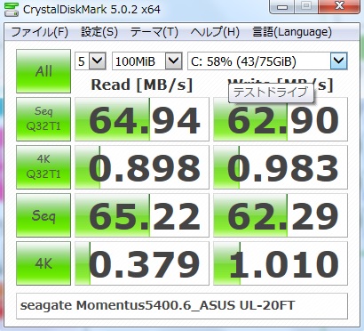 SATA2なんでシーケンシャルがこんなもんしか出ませんが・・・
