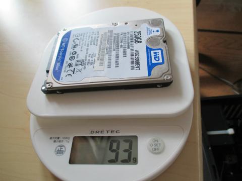 ↓換装予定のノートについていた250GBのHDDだと93gありました。