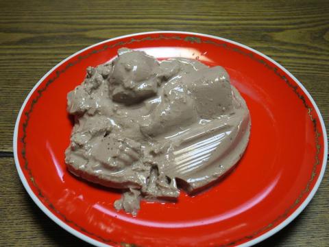 また皿に盛った後に空の容器を見ると細かい部分にとうふ(チョコ?)が沢山こびり付いていて、スプーンでかき出そうにも取れないという(^^;;;