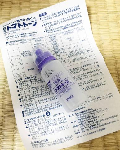 トマトトーンを買ってみました、都会は虫がいないので、実付きが悪いのか?それとも台風のせいなのかどうも実が付かなくて困っています