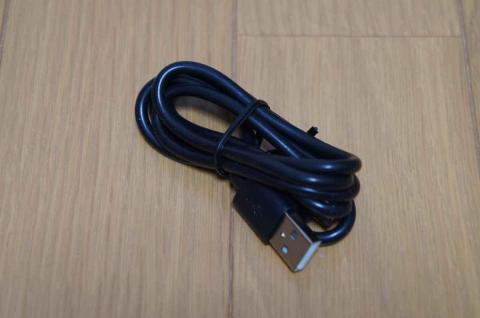付属の充電用ケーブルです。AukeyのUSBケーブルは数本持ってますが、これまでケーブルより太いです。取説や使用には記載がありませんが、急速充電に対応したケーブルかもしれません。