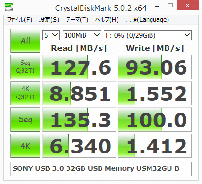 Crystal Disk Markを走らせてみましたが、USBメモリも順当に進化しているようで、速くなっていました。