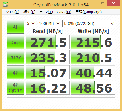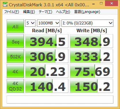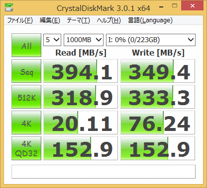 Crystal Disk Markの容量1000MBの1回だけ計測。