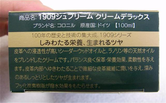 革製品用の保湿クリームを購入しようと思い、革製品の販売サイトをいくつか眺めていると、この「コロニル 1909 シュプリームクリーム デラックス」が推薦されていた。ドイツを代表するシュー&レザーケアブランド「コロニル」の高級オイルで少々お高めではあるが、お手軽に保革・艶出し効果が得られるとのことなので購入してみた。