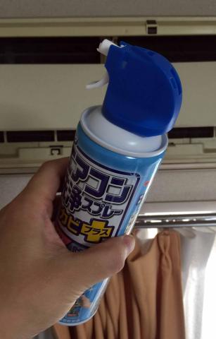 使い方は簡単です、フィルターを外してスプレーするだけ、エアコン1台で1本です