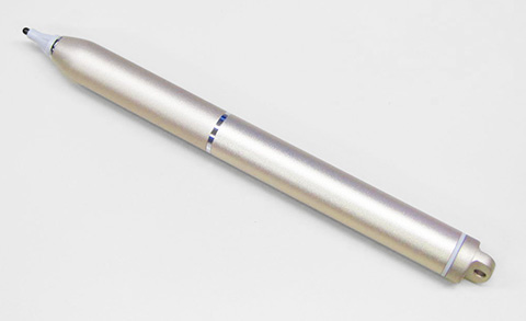 それはさておき、今回の3製品中で最も大柄で重たいペンです。前述の便利な機能の代償として、単4アルカリ乾電池(消耗品)1本分の重さがプラスされ、さらには電池の入る太さが必要となってしまったようです。