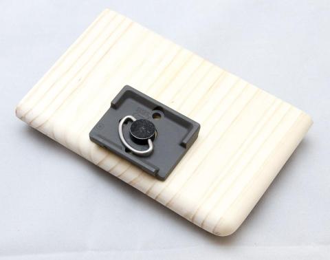 ネジ穴と三脚ネジの軸が同じ太さですから、木材なので締め付ければ溝が切られてしっかりと留まります。