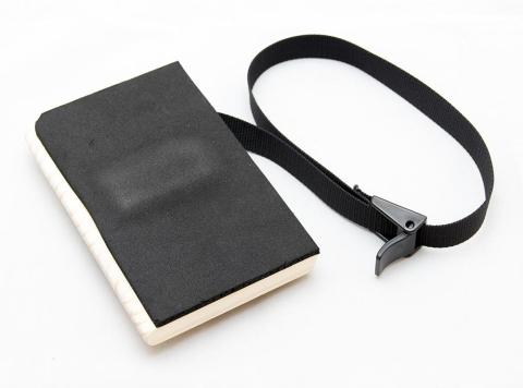 固定用ベルトに関しては、長さが合えば 100円ショップ等で売られているマジックテープ(ベルクロ)の方が手軽だとは思いましたが、自由がきくのでベルトも自分で作る事にしました(バックルにベルトを留めるだけですが)。