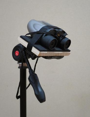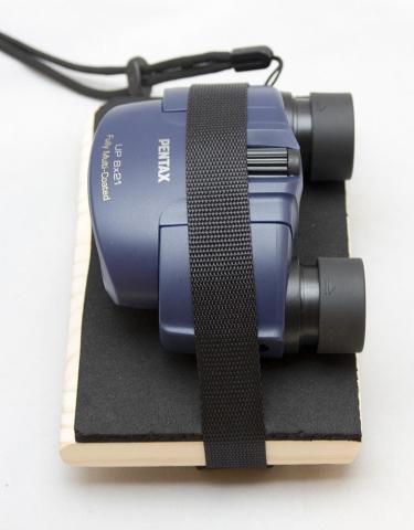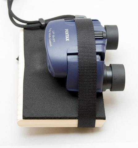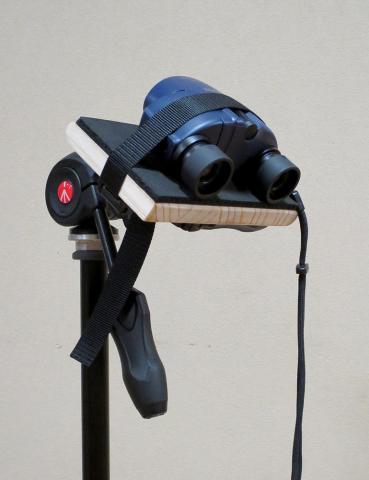 台の上面は双眼鏡が滑らないようにし、下側に三脚穴を空け固定ベルトを用意すれば良いでしょう。