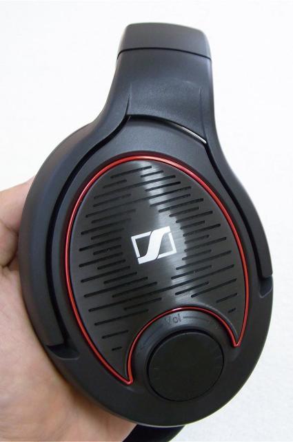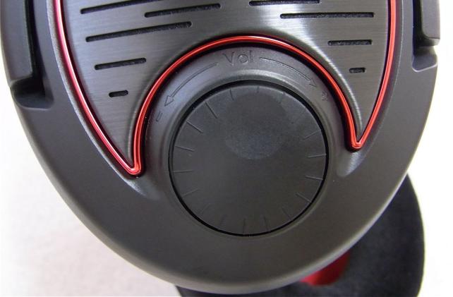 右側のイヤーカップに組み込まれたボリュームコントロール。画面に集中しながら音量操作できる。