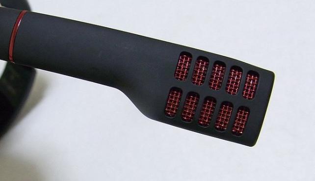 大型マイクはノイズキャンセリング機能を搭載。口側、反対側の双方にマイク孔がある。