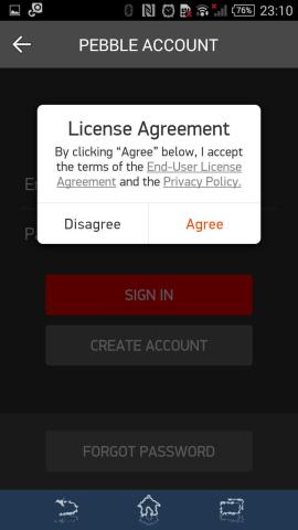初めて pebbleを使う人は「CREATE ACCOUNT」でユーザー登録を行いますが、私の場合は既に利用していますので、EmailアドレスとPasswordを入力し「SIGN IN」をタップします。