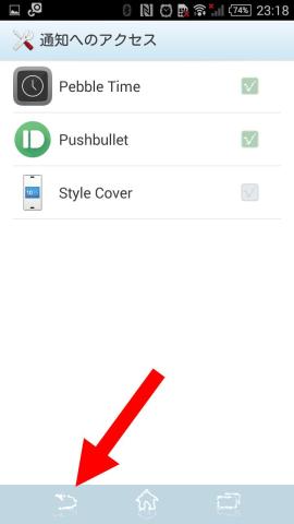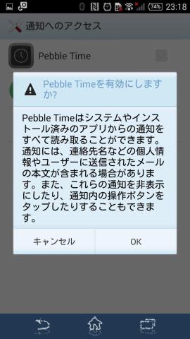 「通知へのアクセス」画面が表示されますので「Pebble Time」の項にチェックを入れます。