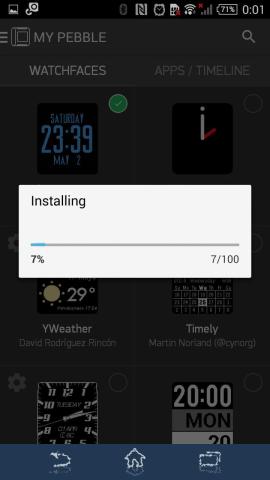 ペアリングが成功するとスマートホンのアプリが Pebbleのファームウェアバージョンをチェックし、古いと勝手にアップデートをしてくれます。