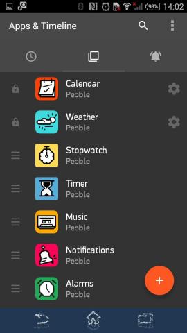 Pebble Steelと比べると標準アプリケーションも増え、ここでも Pebble Steelでインストールしたアプリケーションが入っています。