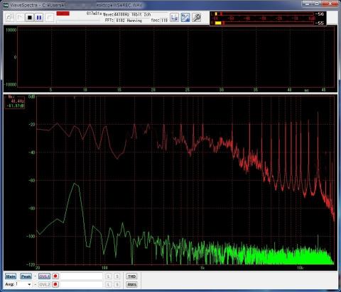 高域で値が下がるようですが単発サイン波の描画はOKのようですのでサイン波を単発で記録再生して以下に表示しています SWEEP信号でも時間を掛けて実行すれば近似値は出るようですが時間が掛かるので此処では単発周波数のみです。