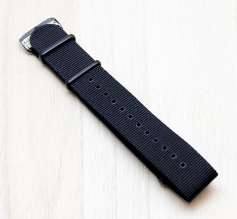 NATOタイプのベルトはナイロン製で、色や柄が沢山出ているのですが、今回時計に合わせ尾錠やバックルまで含めブラックのモノにしました。