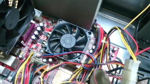 古いマザーボード(PCChips M863G MobileAthlonXP2200+オンボード)のファンが死にかけていたのでこいつに換装しようとする。