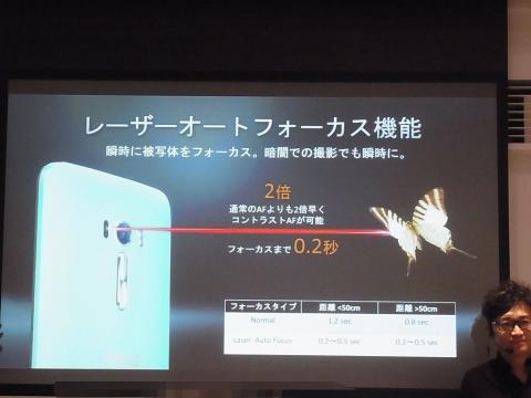 アウトカメラはこのレーザーにより暗闇でもフォーカスが早い。