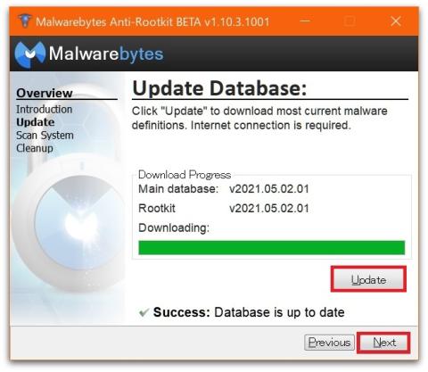 初回なので「データベース」はローカルには無いので、「UPdate」を押すとサーバーをスキャン。