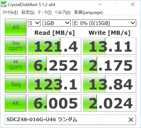crystal disk markでベンチマークをとってみました。しっかりと公称100MB/sを超えています。WRITE性能が少し弱いですが、私の用途は回復ドライブとして使用なので、特に問題ないと考えています。
