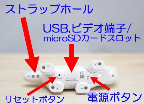 後頭部の下側に LEDがあり、説明書には 4色とあるのですが、実際は緑と青の LEDが二つ内蔵されており、それぞれ点灯状態によって撮影モードが分かるようになっています。