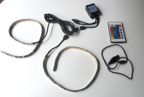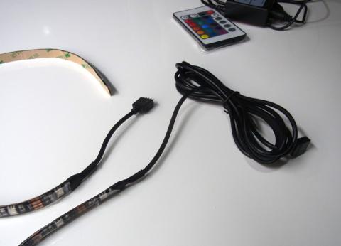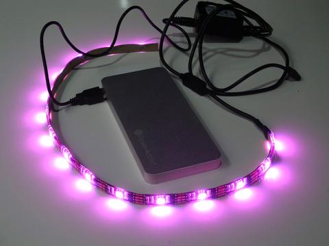 またパッケージを見れば判るとおり元々テレビ裏のインテリア照明用らしいのでUSBコネクタと長いケーブルを持っている。ACアダプタがあれば単品動作も可能なので、ショーケースの照明やアクリルグッズの点灯にもいいだろう。