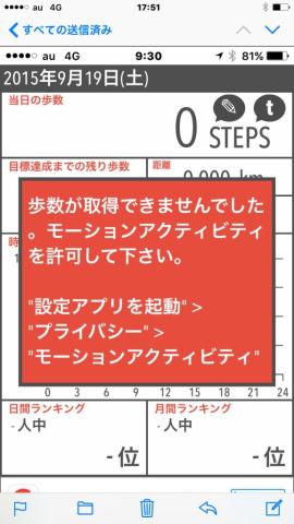 「歩数が取得できませんでした。モーションアクティビティを許可して下さい。」